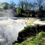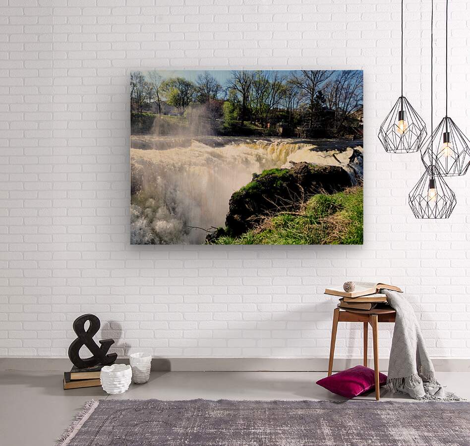 Paterson Great Falls Historic National Park New Jersey Collection. It was one of the largest waterfalls in the US, less than an hour outside Manhattan. Bathed in sunlight and framed by awakening trees, this waterfall roars not in anger, but with the joy of return. The skies are clear, but the river remembers the storms. It's a celebration of survival, of renewal, and the raw beauty that follows struggle. Hang this in bright, open spaces to bring in contrast, between the calm of sky and chaos of water. It reminds us that even on the brightest days, our past strength flows forward with us. It's wild, it's real, and it's alive.