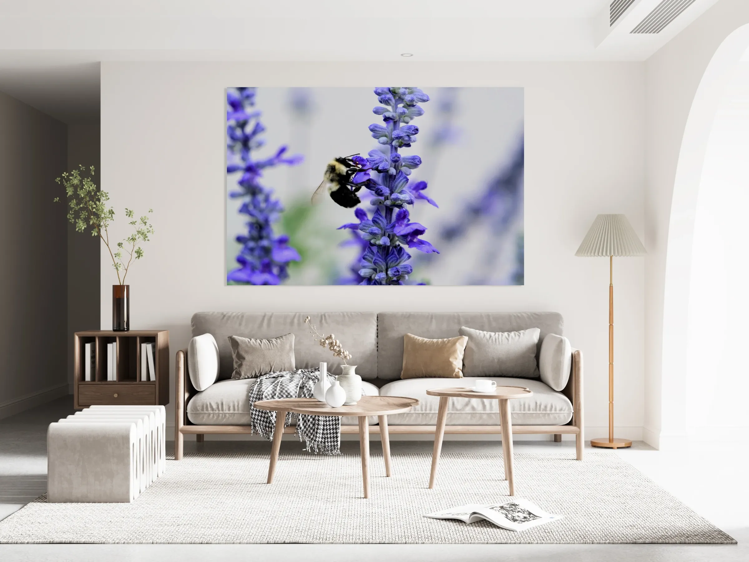 The Bee Collection.This close-up photograph features a bee in mid-action as it gathers nectar from a blooming violet salvia. With its gentle tones and crisp detail, the image celebrates a quiet but essential act in nature’s cycle. A peaceful and vibrant piece that fits well in any space designed for calm, focus, or nature appreciation. Ideal for home offices, meditation corners, or anywhere a little serenity is welcome.