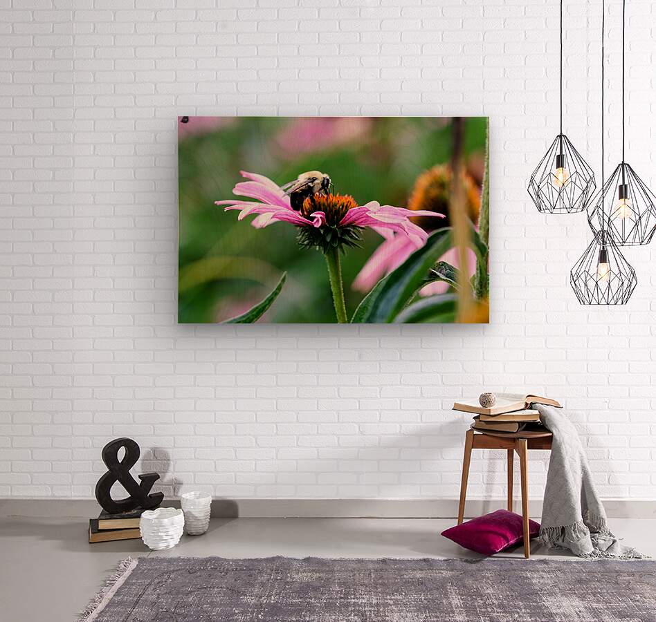 The Bee Collection. A single bee halts in its tireless journey, delicately balanced atop a spiked crown of Echinacea. The gentle arc of the petals mirrors the curve of motion stilled. In that pause, the natural world holds its breath a suspended instant of connection between pollinator and bloom, purpose and peace. Perfect for meditation spaces or nature lovers’ walls, this image is more than a still life, it’s a freeze-frame of intention. It channels the energy of rest within effort, of quiet resilience. This work invites viewers to slow down, breathe deeply, and observe the micro-miracles that power our ecosystems daily.