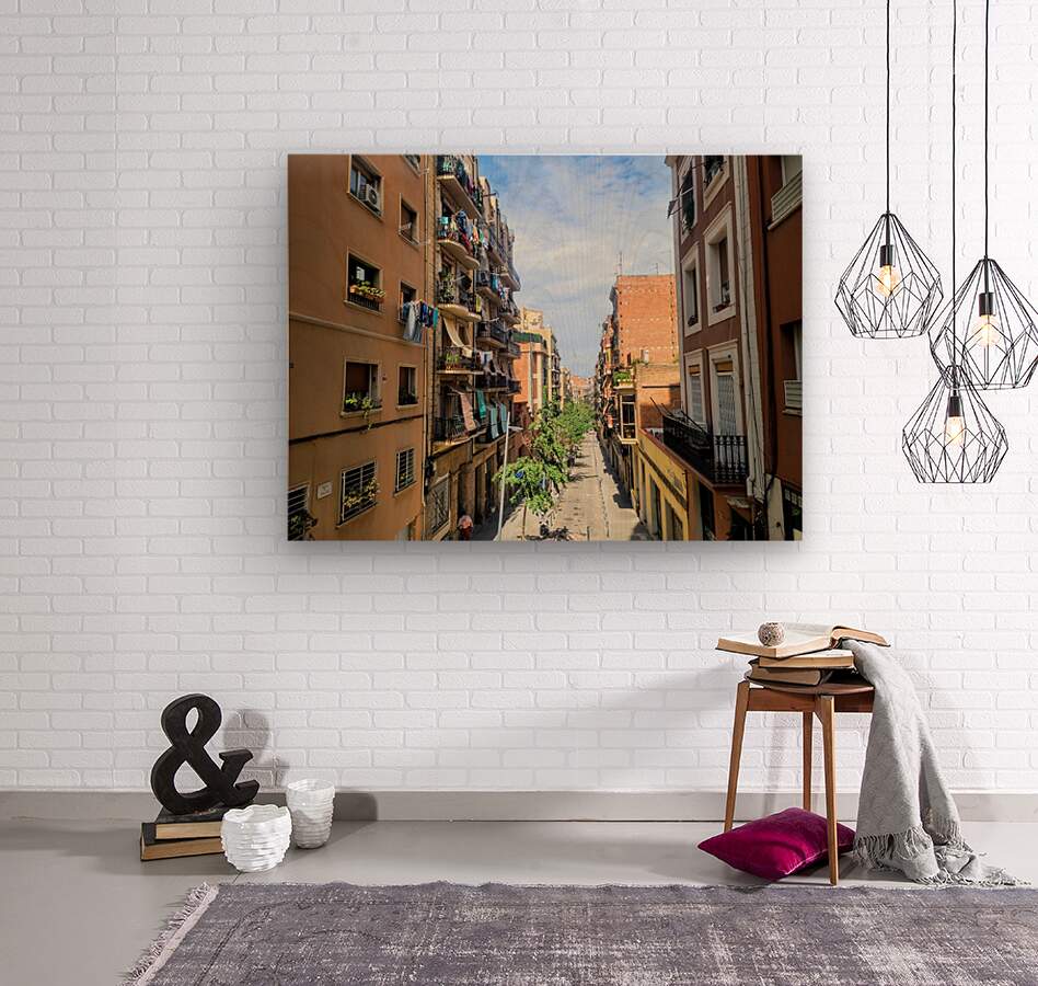 Walking Barcelona Collection. In this captured moment, an anonymous street holds the light just right buildings bookending a cobbled corridor like well-loved novels. Laundry flutters gently as if sighing into the day. Trees rise modestly between footsteps long gone. It's a place where nothing 'happens' and that's its quiet glory. This image makes an ideal statement for lovers of subtlety and mood. It doesn’t shout for attention; it whispers, drawing the observer into a place both specific and universal. A reminder that stillness has a rhythm, and life even in the quietest corners , sings.