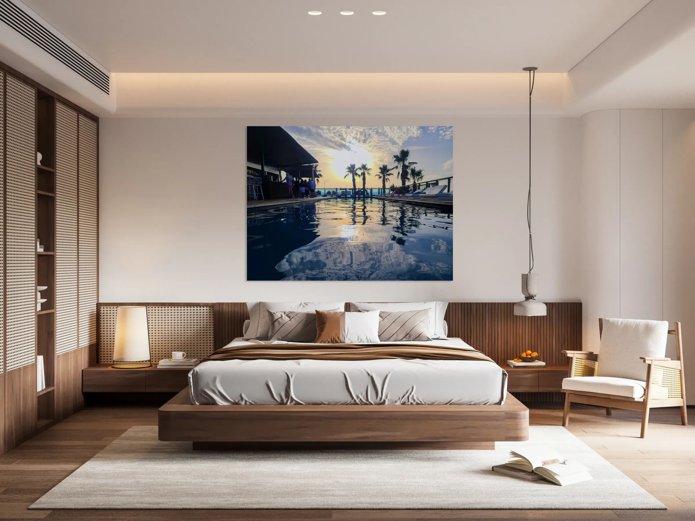 With its deep shadows and blazing sky, Velvet Pool, Burning Sky offers a dramatic take on evening calm. The pool becomes a stage, mirroring the fiery ...[+]