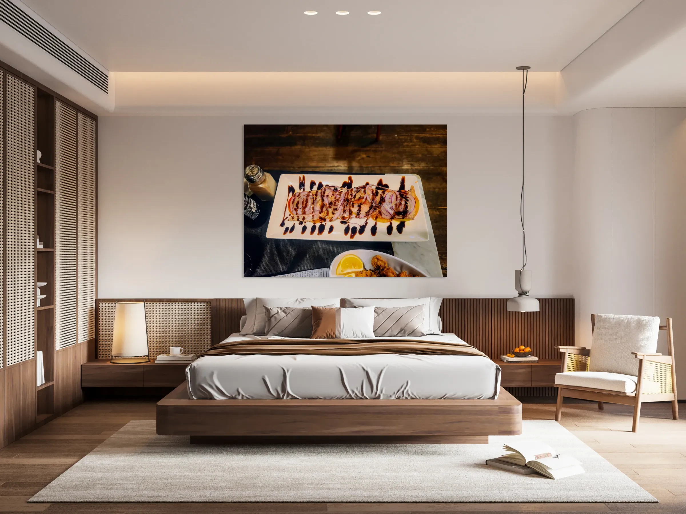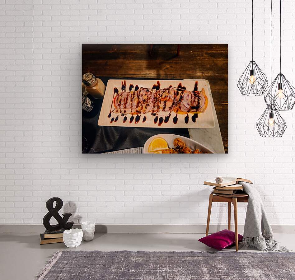 Slices of Temptation invites you into an intimate moment at the table—where food isn't just consumed, it's admired. With glistening slices of cured meat, sharp raw onion circles, and a glossy balsamic glaze arranged with seductive precision, this image is the embodiment of culinary lust. The warm lighting and rustic floor textures contrast with the sleek white plate, making this an irresistible piece for any kitchen, restaurant, or contemporary home. Let it hang in your space as a reminder that temptation can be tasteful—and beautiful.