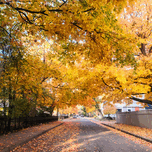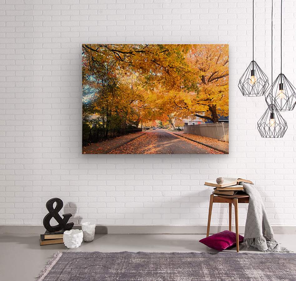 Colors of Fall Collection. A quiet neighborhood street transformed by a canopy of golden maple leaves. The vibrant yellows and warm oranges glow under the soft afternoon light, creating a dreamy tunnel that invites you to slow down, breathe in the crisp air, and get lost in the moment.