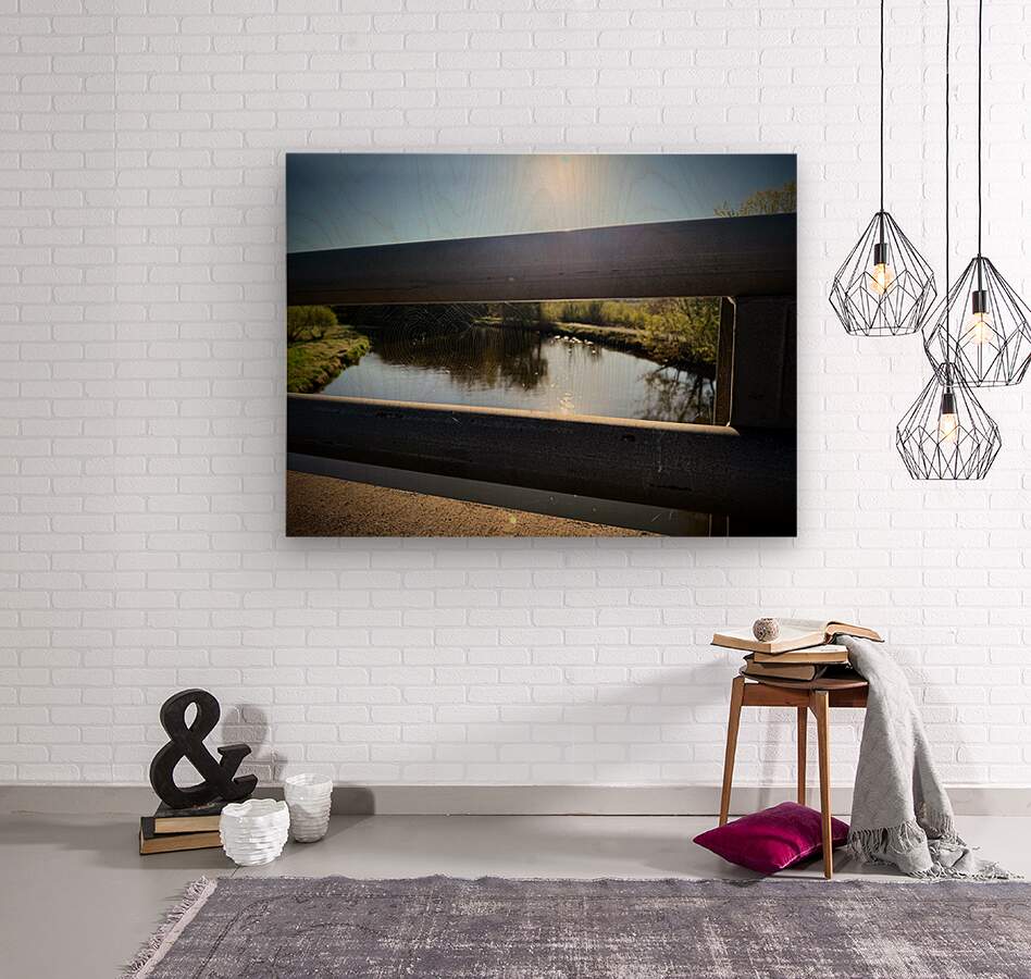 Wisconsin Collection. This striking photo captures a delicate spider web spun between metal bridge railings, gently illuminated by the early morning sun. Below, a calm river reflects the sky, surrounded by spring greenery. The image blends sharp natural detail with a broader peaceful landscape, evoking themes of patience, fragility, and the unnoticed beauty in everyday places. Ideal for wall art, symbolic storytelling, mindfulness campaigns, or nature-inspired decor.