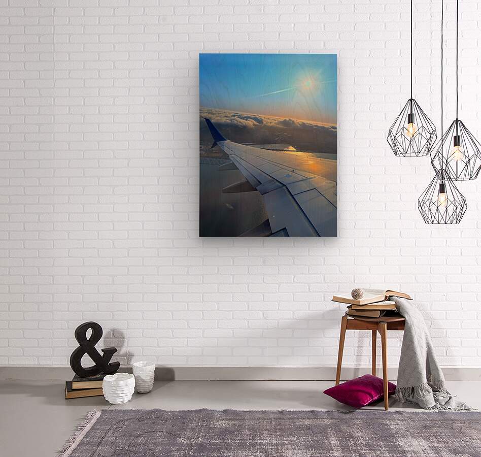 This is not just a flight—it’s a moment above the world. The city rests under clouds like a hidden kingdom, wrapped in mist. The sun stretches long shadows across the wing, painting a story of solitude and wonder. Ideal for contemplative spaces, or as a soft focal point in minimal interiors.