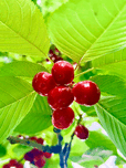A vivid capture of ruby-red cherries nestled among fresh green leaves, this photo speaks of nature’s effortless generosity. The abundance of fruit a...[+]