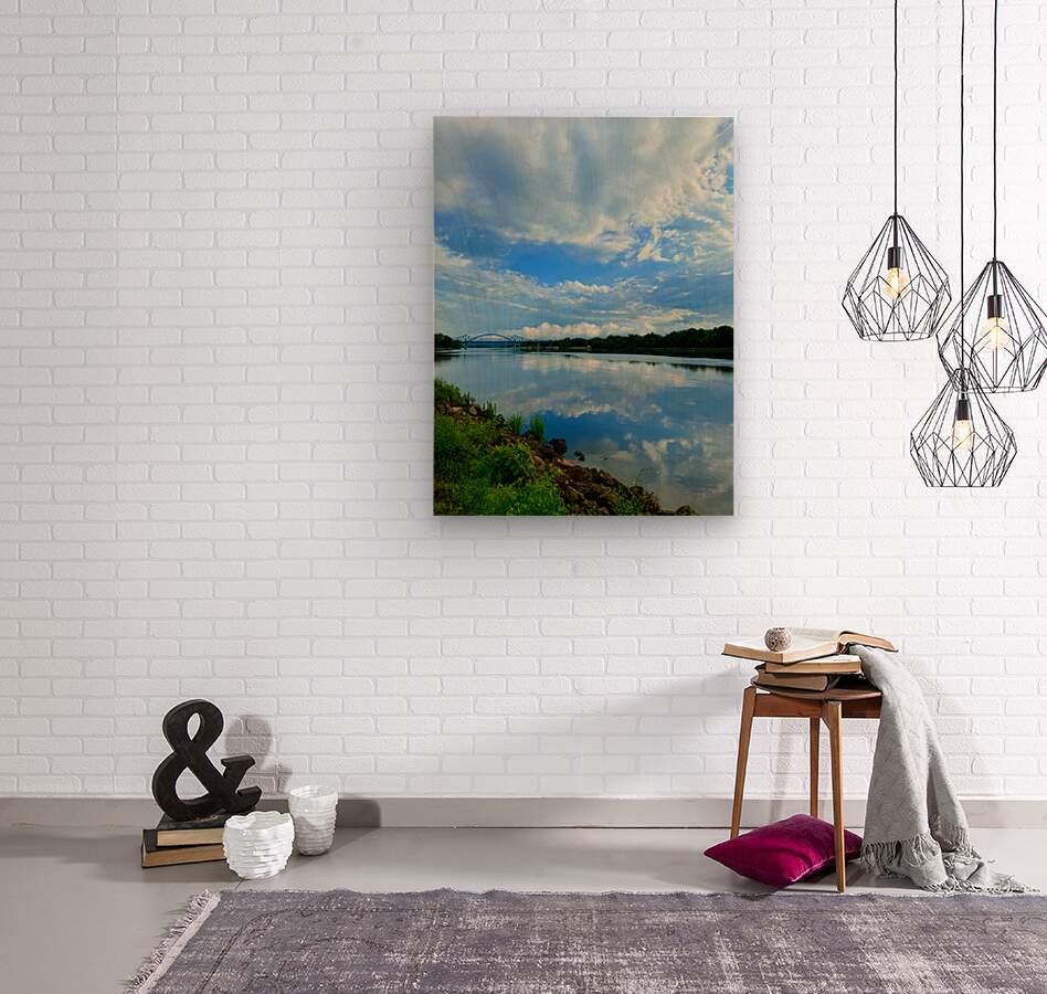 Nestled in a distant valley, the river slumbers under a blanket of subdued blues. The clouds above, like pulled wool, stretch across the sky in hushed tones. A meditative scene born from the earth’s exhale. In any space where peace is welcome, this art brings the hush and depth of a forgotten valley into your daily rhythm.