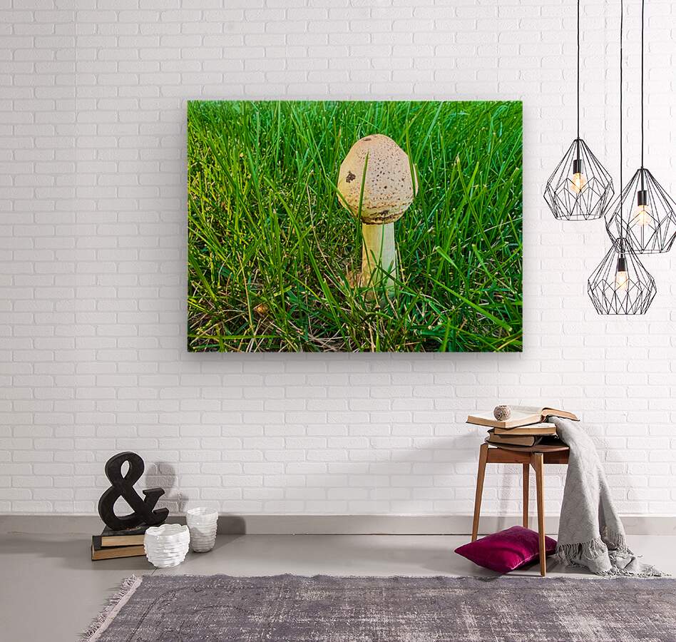 This photograph captures a solitary mushroom emerging boldly from a thick bed of vibrant green grass, basking in early sunlight. Its speckled, dome-shaped cap stands like a natural sculpture, unassuming, yet remarkably intricate. The mushroom, though simple, stands as a resilient artifact of seasonal transformation and unseen life cycles. As wall art, this piece invites introspection and reverence for the unnoticed miracles around us. It whispers of life quietly unfolding just outside our daily awareness. A humble mushroom becomes a metaphor for persistence, balance, and the quiet force of nature. Ideal for meditation spaces, offices, or any room needing a subtle yet profound anchor to the natural world.