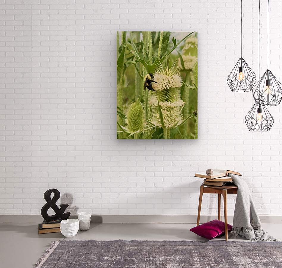 A bumblebee clings to the spiny bloom of a teasel, surrounded by a halo of creamy white flowers. The lighting suggests warmth and clarity, while the bee’s quiet diligence reminds us of the beauty in routine, the sacredness of everyday labor. As a piece of wall art, it encourages reflection, appreciation, and calm focus. Perfect for reading corners, wellness spaces, or minimalist homes that embrace organic beauty and quiet purpose.
