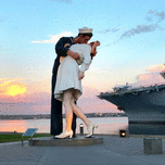 Part of the Serenely San Diego collection, this symbolic "Kiss" giant statue stands in the harbor next to the USS Midway Museum. The calm seascape will take your breath away.