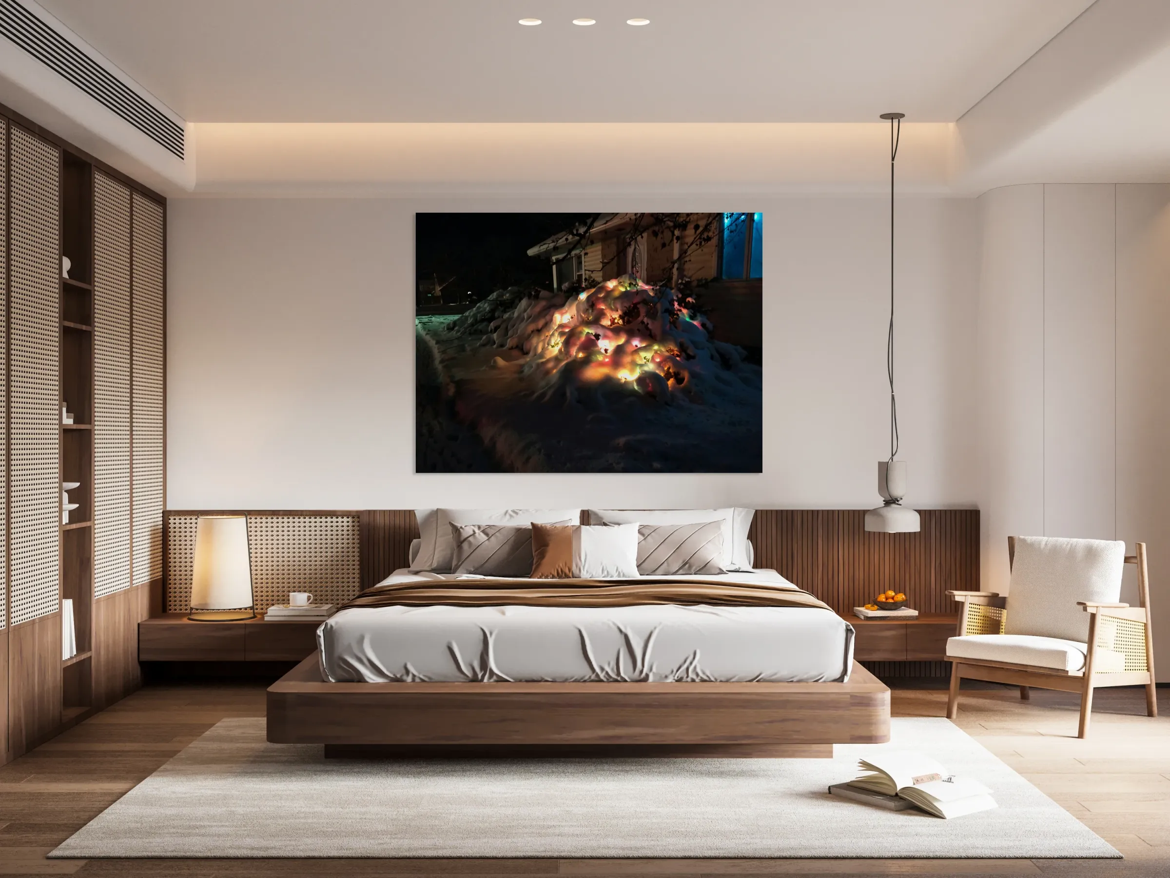 Winter Wonderland Collection. Despite the cold, winter can bring beautiful scenic views with glistening snowfall in nature. This underneath the heavy later of snow is a bush decorated with Christmas lights.