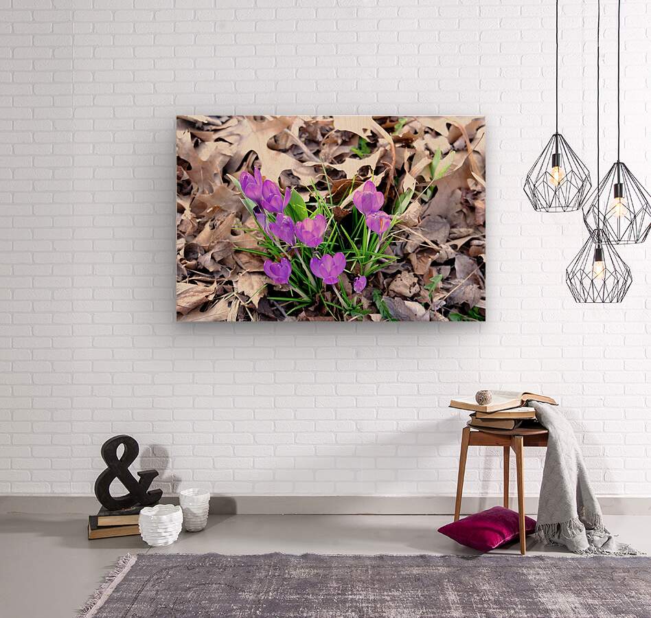 Blooms of Joy Collection. This piece perfectly encapsulates the scene of purple crocuses emerging through winter’s fallen leaves. Crocuses are among the first flowers to bloom and are widely associated with happiness, the arrival of spring, and new beginnings. Their appearance after a long winter represents the triumph of life over darkness and the renewal of nature. Purple crocus blooms also carry connotations of dignity and spirituality. As wall art, it invites viewers to reflect on resilience and renewal, bringing a hopeful and optimistic tone to any space.