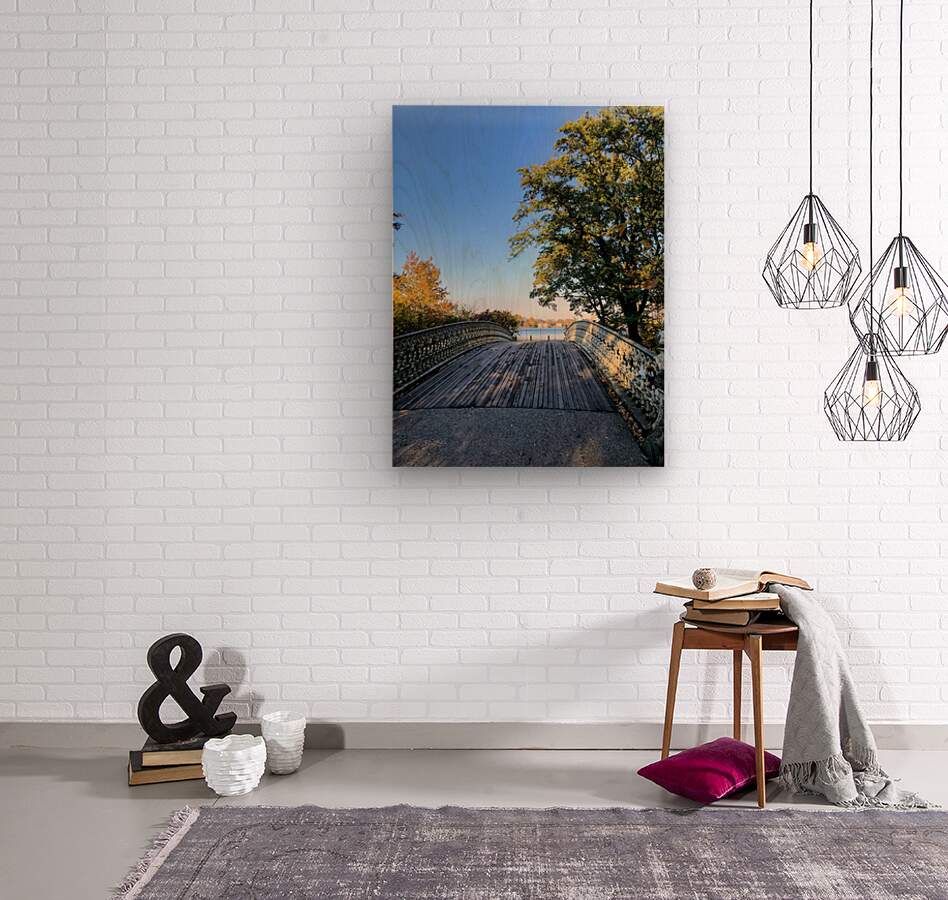 Bridge to Central Park Reservoir . Central Park Collection. Blending human craftsmanship with natural beauty, this photograph reveals the delicate structure of a Central Park bridge guiding the viewer toward a glistening horizon. Framed by autumn’s golden hues, it symbolizes transition, escape, and the stillness found in movement. A refined addition to any space, this piece communicates introspection and elegance.