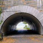 Riverside Park View of Twin Towers in New Jersey. Riverside Park Collection. With its strong architectural curve and quiet tone, this image balances form and feeling. The view beyond the tunnel glows with soft light, offering the suggestion of space, time, and a peaceful destination. A beautiful fit for spaces designed to inspire focus and calm.
